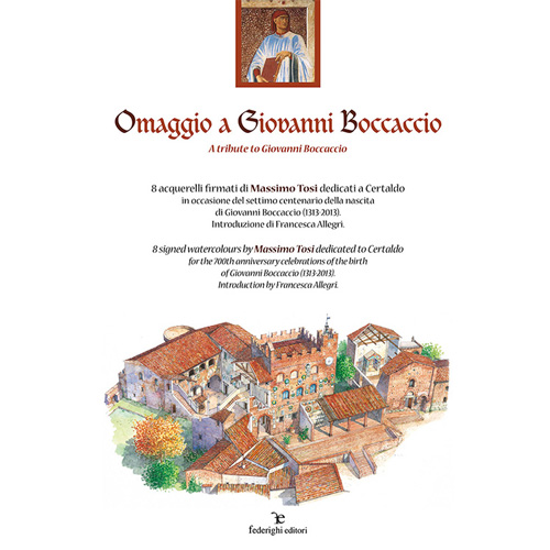 Folder containing 8 prints of watercolors by Massimo Tosi dedicated to Certaldo Alto on the occasion of the seventh centenary of the birth of Giovanni Boccaccio (1313-2013). Contains a short biography of the poet, in Italian and English.