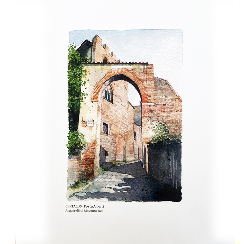 Watercolor Certaldo Alto Porta Alberti – Massimo Tosi